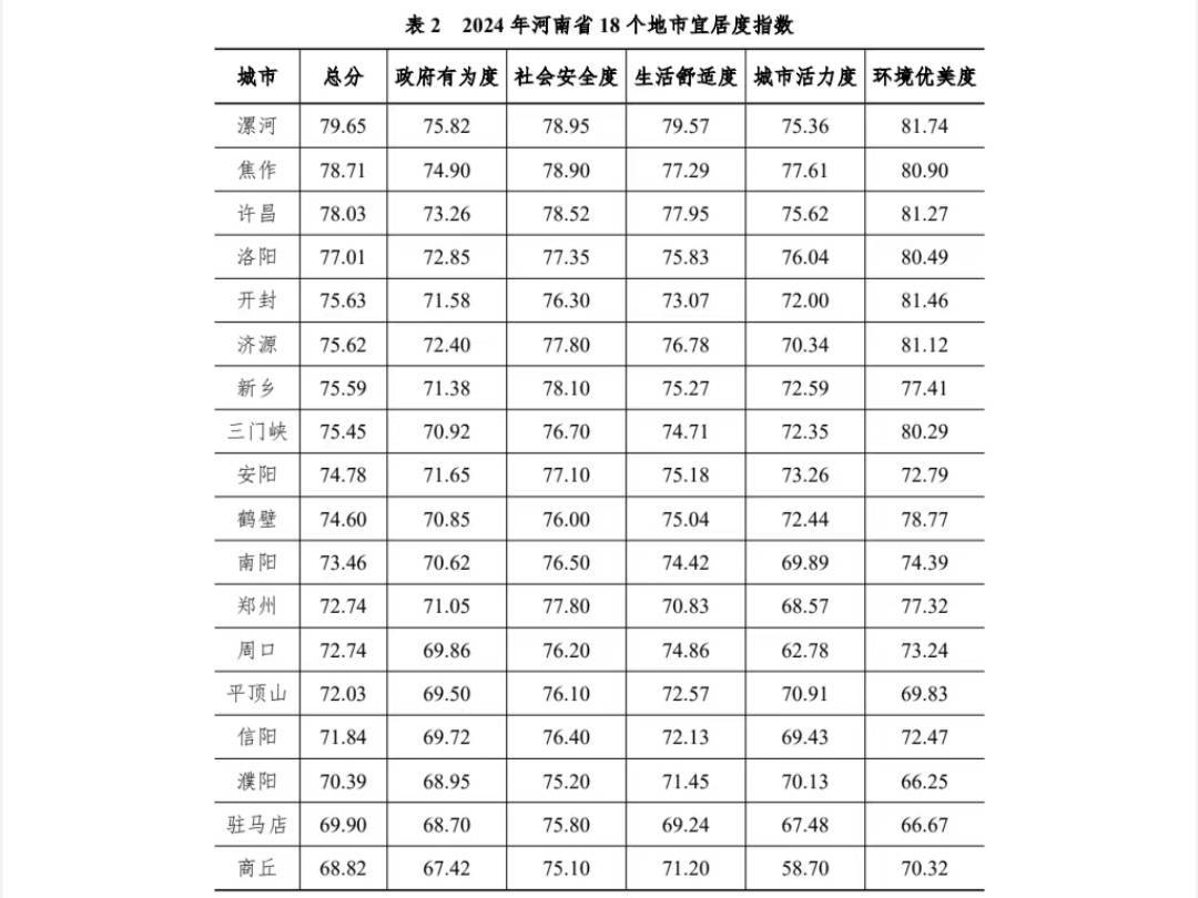 漯河、许昌、洛阳、开封宜居度领跑全省